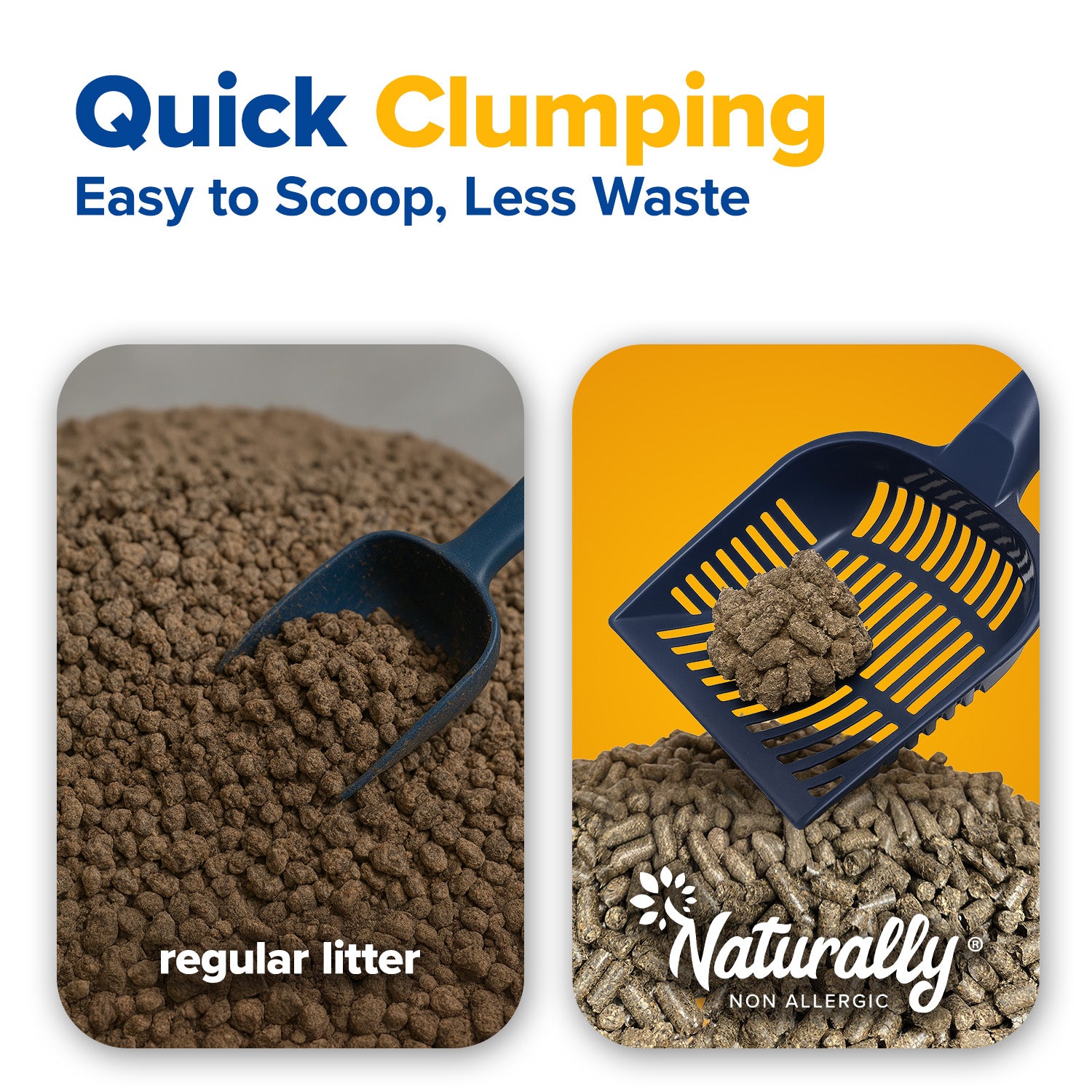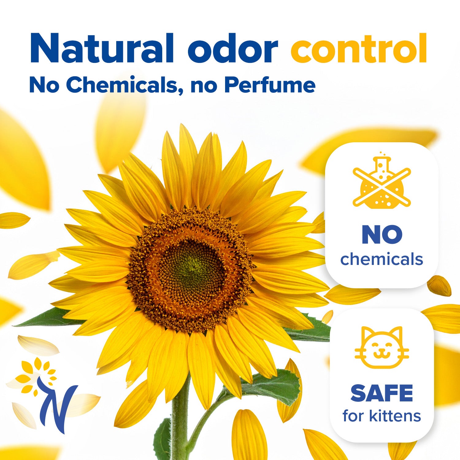 Naturally Non Allergic Cat Litter absorbs up to 500% of its weight. Has a dark gray color and a natural, slightly sunflower fragrance. Thanks to quick absorption and clumping, Naturally Non Allergic Cat Litter keeps bad smells away up to 500% better than traditional cat litter.